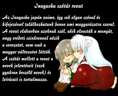 InuYashának van egy szellem testvére: Sesshoumaru, akivel örök csata folyik. Akárhányszor találkoznak, vérre menő harcot vívnak. Kagome és InuYasha között lassan szerelem alakul ki. InuYasha kora 200 év. Fegyverei: Tetsuaiga (ami egy csapással 100 szellemmel végez, apjától kapta), karmok. Jelleme igen féltékeny, de bármi áron megmenti barátait (persze egy kicsivel később) A Tetsuaiga megakadályozza abban InuYashát, hogy szellemé változon. Ha netán mégis azzá válna, akkor addig harcolna amíg meg nem hal.